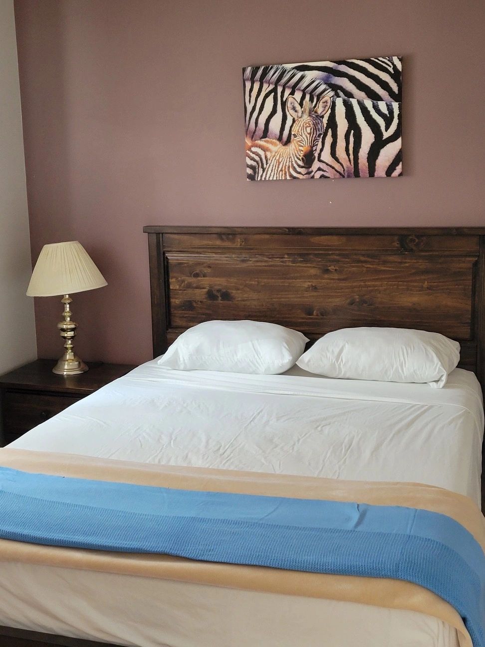 Three double beds, full kitchen, cable television, full bath, living room with pull out sofa, dinning table. Sleeps up to 8